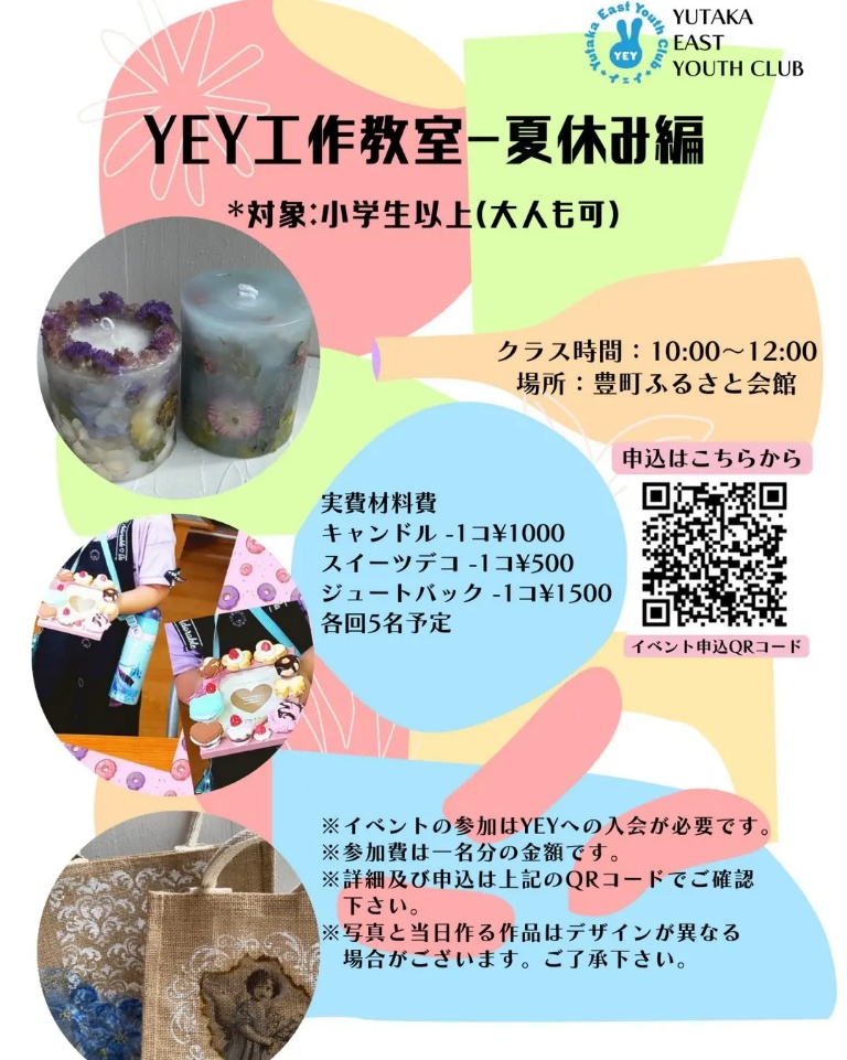 豊町東町会夏祭りでの、YEYのブースでの催し物についての説明紹介予定